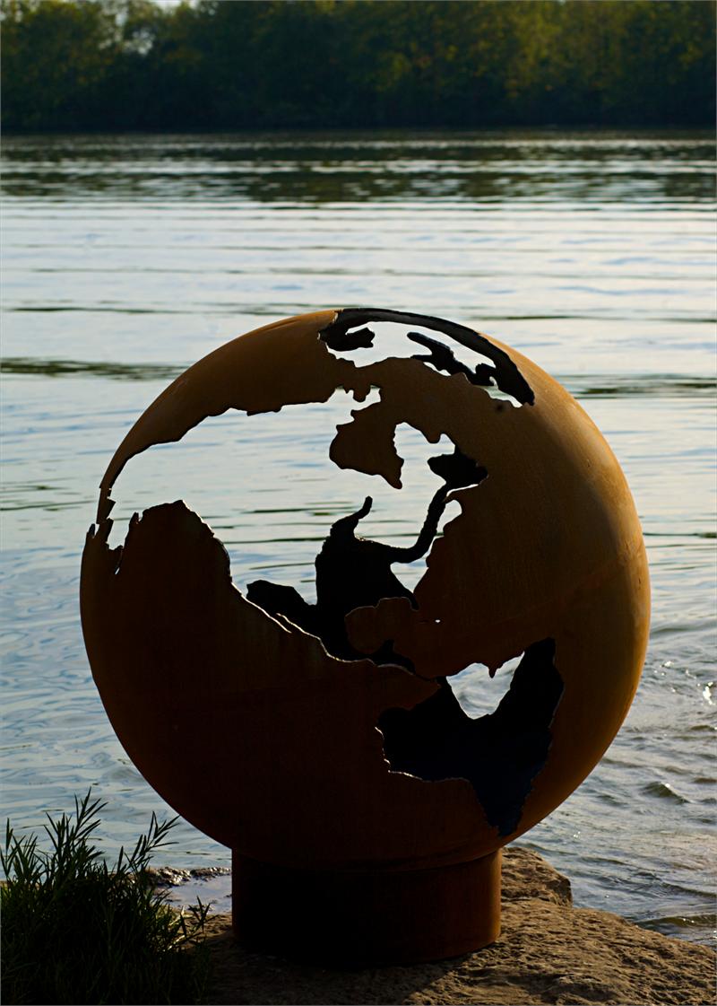 The Third Rock Outdoor Fire Pit is designed by Rick Wittrig and is one of the more creative fire pits I’ve seen in a long time. The fire pit is handmade and depicts the globe with the land part cut out of the giant ball of steel to show the fire. Each fire pit is individually numbered and signed by Rick and is made to order.