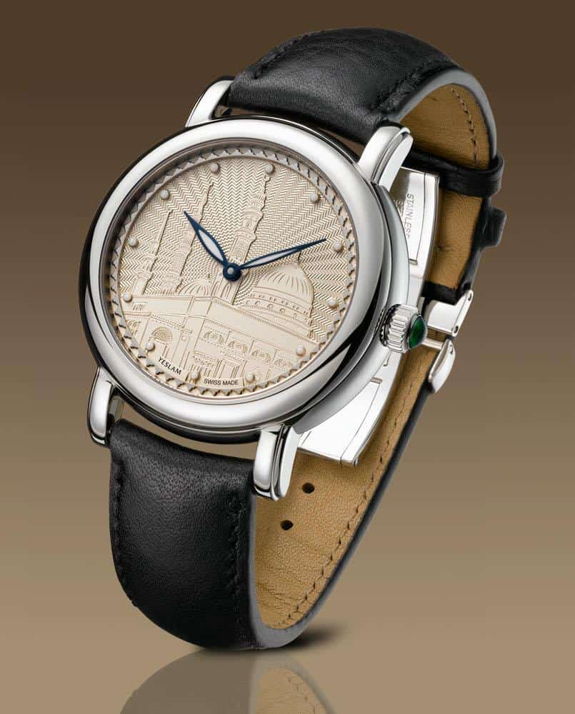 The watches come with very clean looking stainless steel cases that measure 42mm. The dials feature images of the Kaaba, on the Makkah watch, and Al-Masjid al Nabawi mosque on the Medina watch. The images have a guilloche background, giving the images a 3D look.