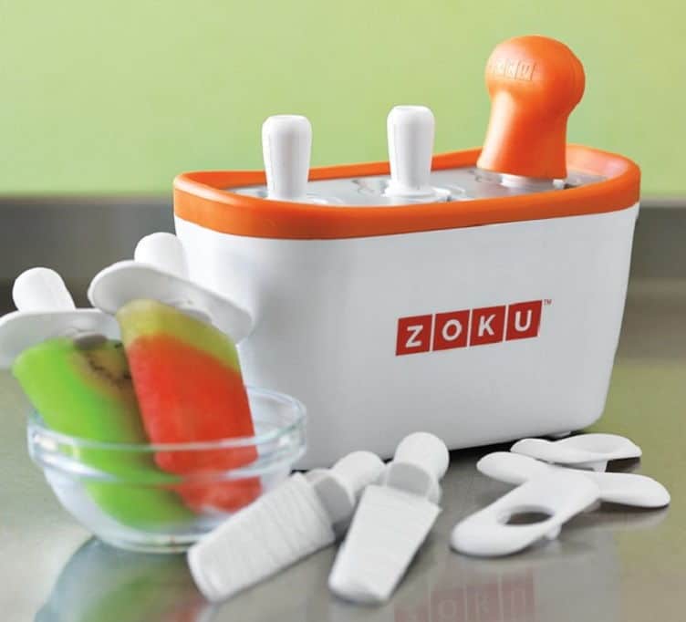 You can use all types of ingredients including juice, yogurt, fruits, and even cream bases. The Zoku Quick Pop Maker comes with the base, remover tool, six reusable pop sticks, and six reusable drip guards. The device comes in a number of colors and is available for $49.95 or you can grab it from Amazon with free shipping.